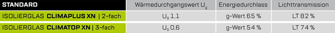 Schon unsere Standardverglasung ist mit SWISS-SPACER ULTIMATE — der »wärmsten« Isolier-glaskante auf dem Markt — und einer hervorragenden Wärmedämmbeschichtung ausgestattet.