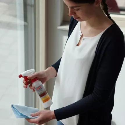 Selbst bei matten Beschichtungen liefert dieses Pflegesystem perfekte Ergebnisse und erhält die ursprüngliche Optik. 1-2-mal pro Jahr angewandt, verlängert es nachhaltig die Lebensdauer der Elemente. Die Basis aus reinigungsaktiven und pflegenden Substanzen wirkt wasser-, öl- und schmutzabweisend und verschließt selbst mikrofeine Risse und Poren in der Oberfläche. Darüber hinaus kann das Pflegeprodukt problemlos überlackiert werden. Universell einsetzbar für Fenster, Haustüren und Gartenmöbel